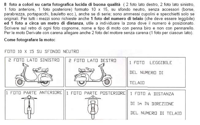 Fabio c'è ben poco da aggiungere, se non di evitare di usare flash, possibilmente fate foto di giorno ma non con luce diretta, evitate ogni tipo di riflesso, eviterei anche di lucidare a specchio la moto, ogni riflesso sospetto può indurre l' esaminatore (età media, a parte il buon Aldo, 75 anni....beati loro !) a "vederlo" come un' ammaccatura.....