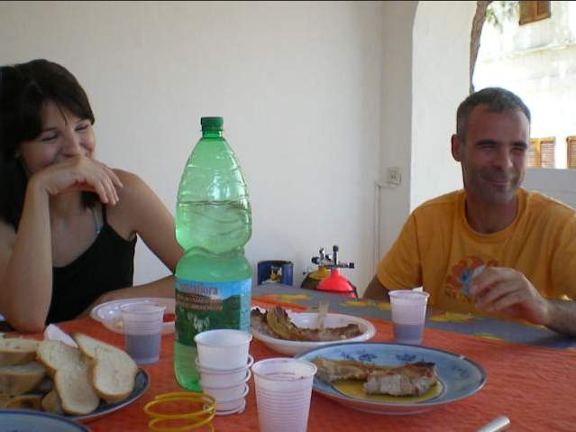 Tenete conto che Alessio si è presentato, oltre che con Francesca (la sua findanzata), con un due bottiglie di vino fatto in casa da 2 litri cadauna (una di Cannonau e una di Monica, si, si chiama così) e con una quantità spropositata di carne (bistecche di dimensioni disumane, forse di tirannosauro sardo ), che non solo non siamo riusciti a finire in giornata, ma ci abbiamo pure messo qualche giorno per azzerarla tutta!!!