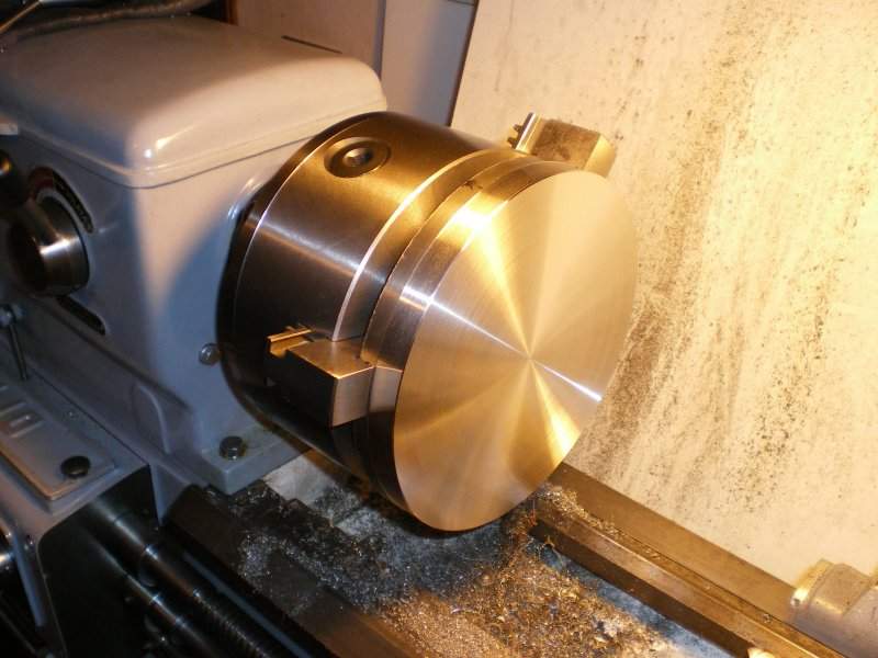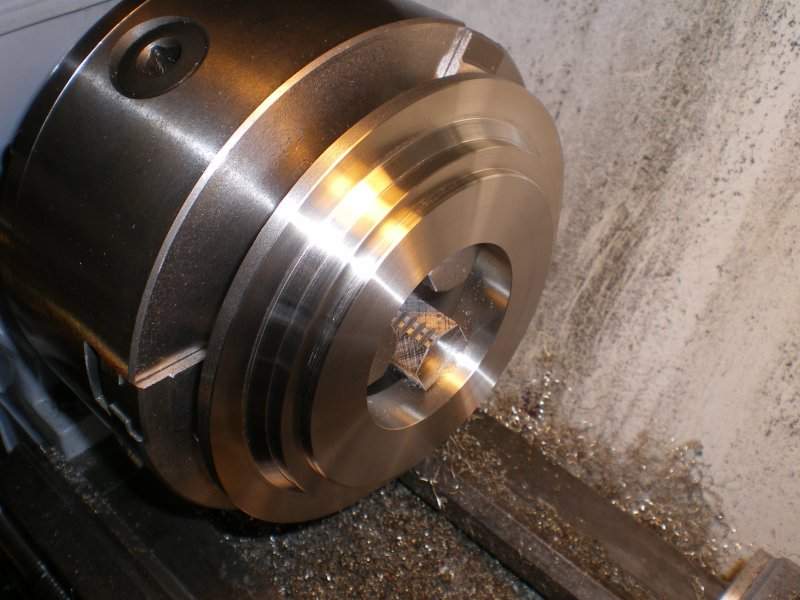 Il cioccone è diventato cavo (foro interno da 114 mm) e comunque ancora è abbastanza lontano dalla sua forma finale, che assumerà solo dopo intensa opera di fresatura che ancora mi devo sorbire.
