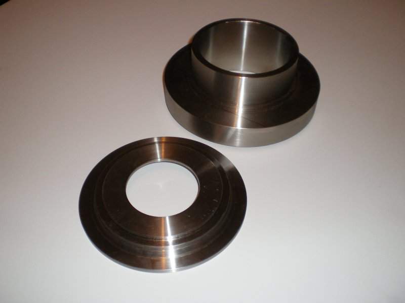 Questo è il cioccone iniziale di acciaio inox, oltre 30 Kg sulla bilancia (il diametro della "torta" è 200 mm):